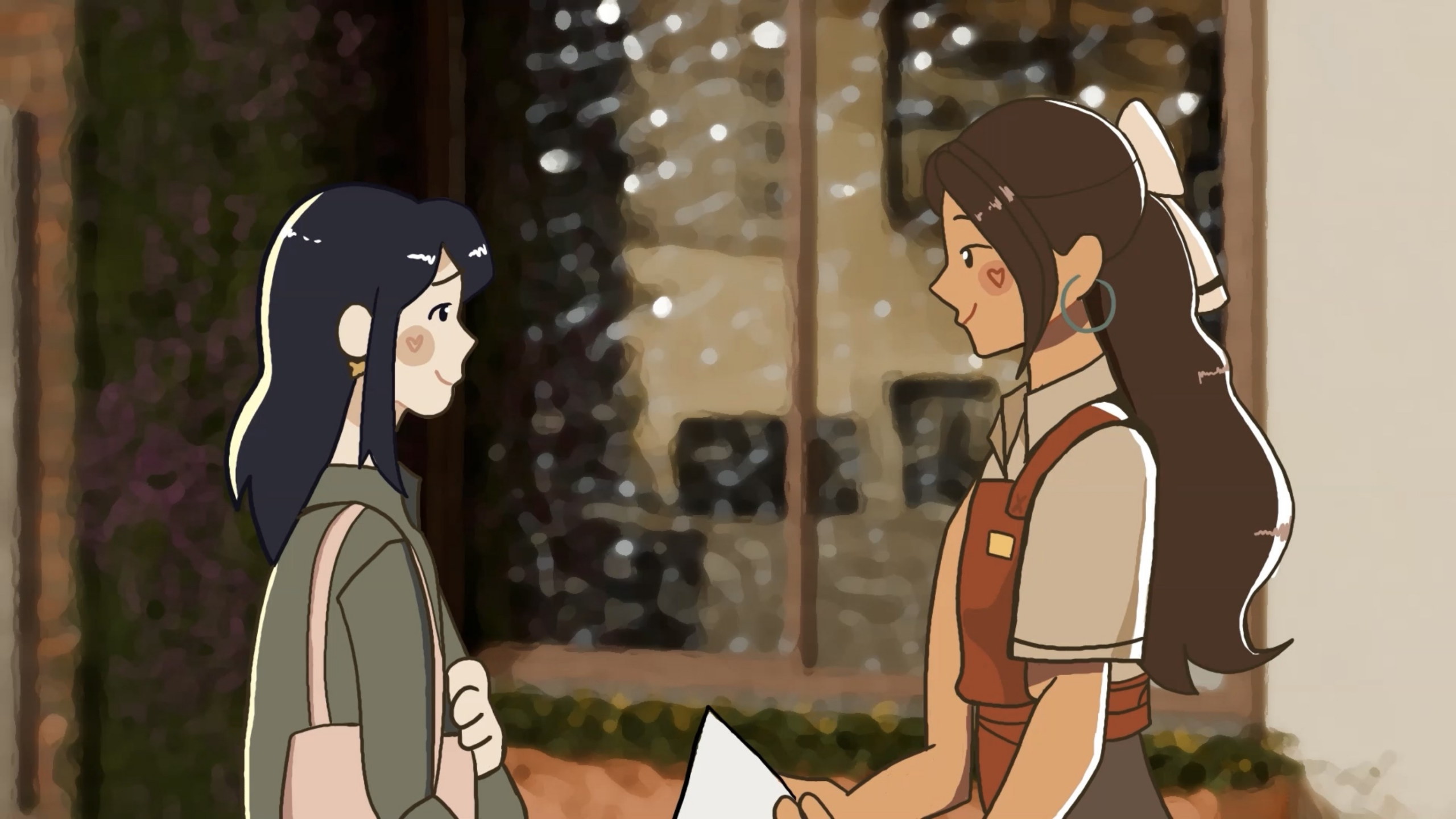Darcy ist schüchtern und ihr fällt es schwer andere anzusprechen. Als sie jedoch in einem Café auf Sofia trifft, muss sie ihren ganzen Mut zusammennehmen, um sie anzusprechen. Schafft sie es oder wird ihre Angst sie aufhalten? In „Could We Be Friends“ habe ich 2025 meine erste storybasierte Animation umgesetzt. Die Story, Storyboard und Character Designs sind von mir geschrieben und designt.
